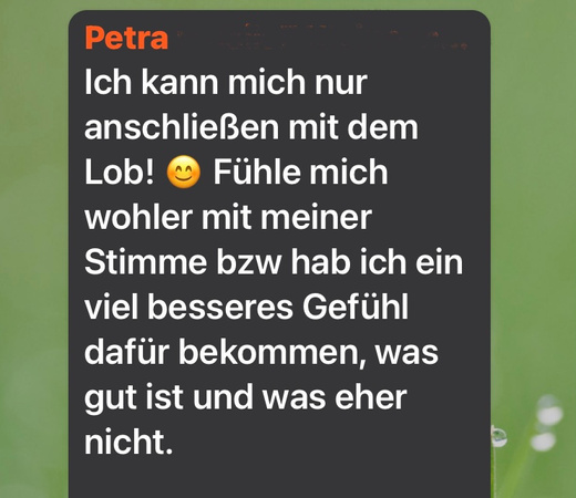 Obwohl ich im Stimmtraining ausgebildet war, half mir das nicht weiter, denn Stimmtraining hat in der Regel den Fokus aus der “Verschönerung” deiner Sprechstimme, nicht auf dem “Überleben”, denn genau darum gehst doch, wenn du solche Probleme hast.