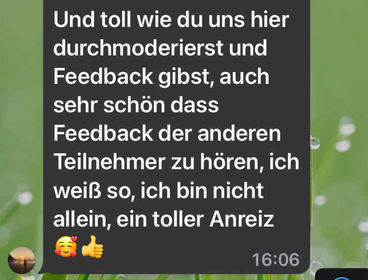 Natürlich kann ich dafür nicht garantieren, Werde dich aber mit erprobten Mitteln unterstützen und dir auch über Durststrecken helfen, genau wie das der Gruppenspirit tun wird. Plus: Du setzt ab dem ersten Tag um und das motiviert!
